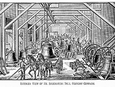 In 1863 Johann brought in his younger brother, 28 year old Henry and changed the company name to J.G. Stuckstede & Brother. With the help of Henry the foundry began to grow and later ended up being the largest bell foundry west of Cincinnati.
